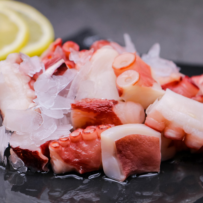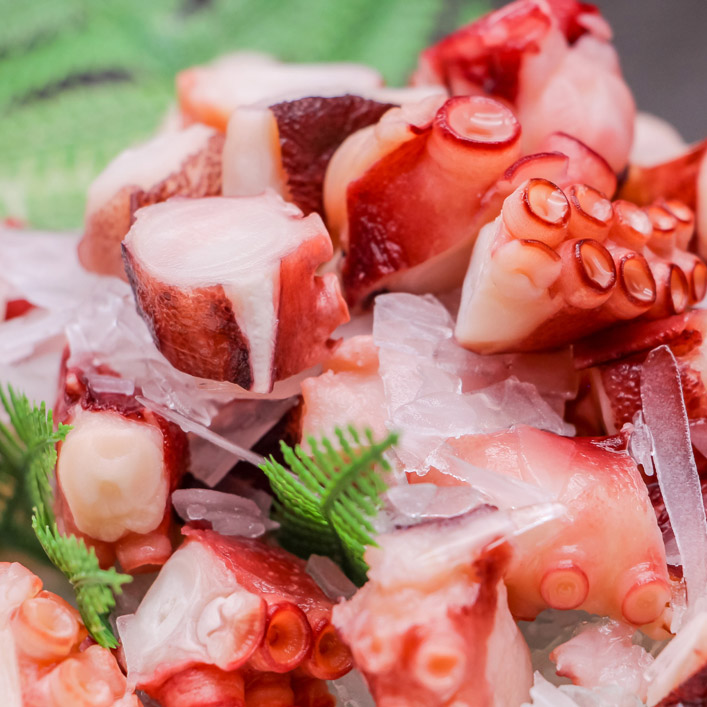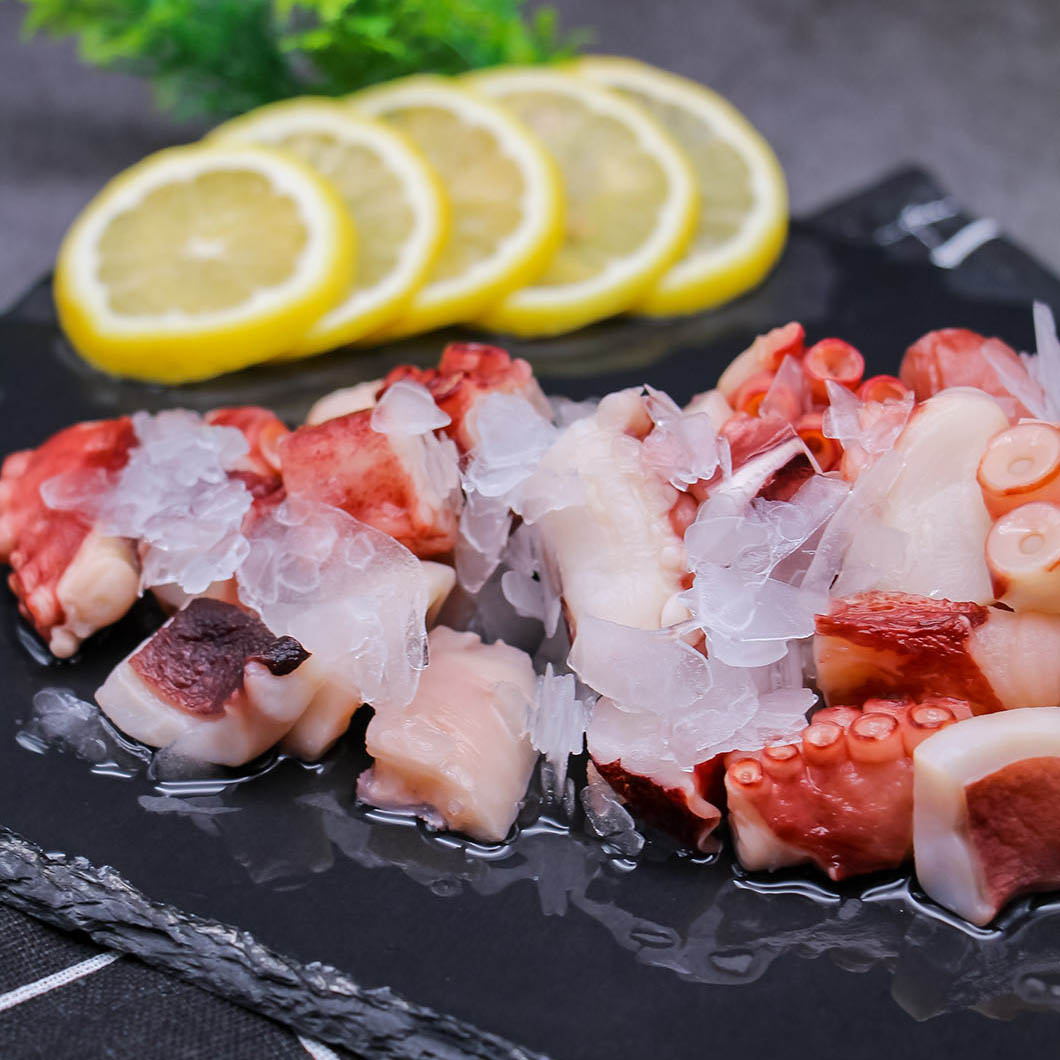 寿司和生鱼片: 煮熟和冷冻的水煮章鱼片适合制作寿司和生鱼片。将它们切成薄片,作为寿司卷或生鱼片的主要成分之一,为这些经典的日本美食增添了美味的海鲜风味。