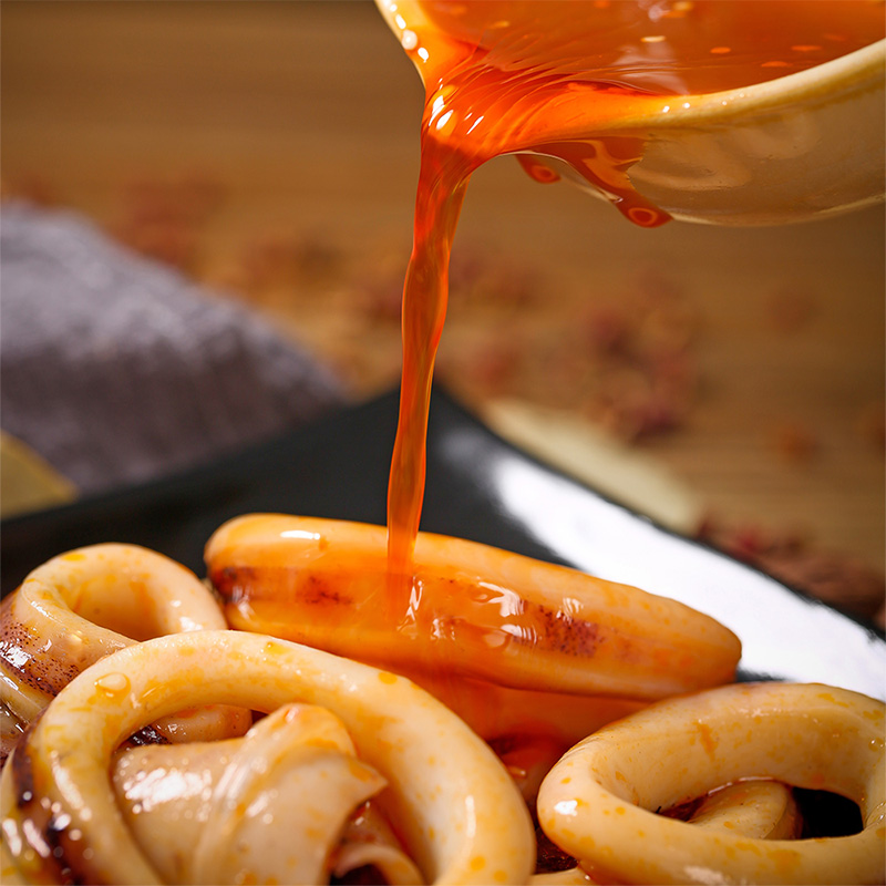 我们使用最新鲜的鱿鱼,确保肉质细嫩,口感滑嫩。再加上我们特制的辣酱,由多种香料和辣椒调和而成,每一片鱿鱼圈都充满了浓郁的辣味。在制作过程中,我们注重细节,保持鱿鱼的天然风味的同时加入了辣味。