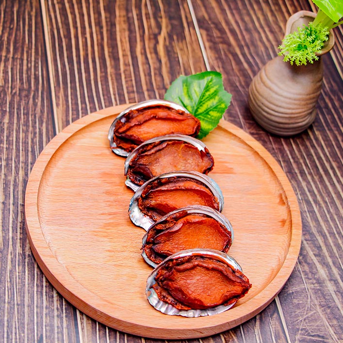 冻熟腌制鲍鱼是将活鲍鱼经过清洗、高温焯水、去除内脏后而成。然后将鲍鱼放入日本传统酱汁中煮,特制的酱汁渗入鲍鱼中,鲜甜可口,风味独特。壳与肉相连,取出内脏,解冻后即可食用!