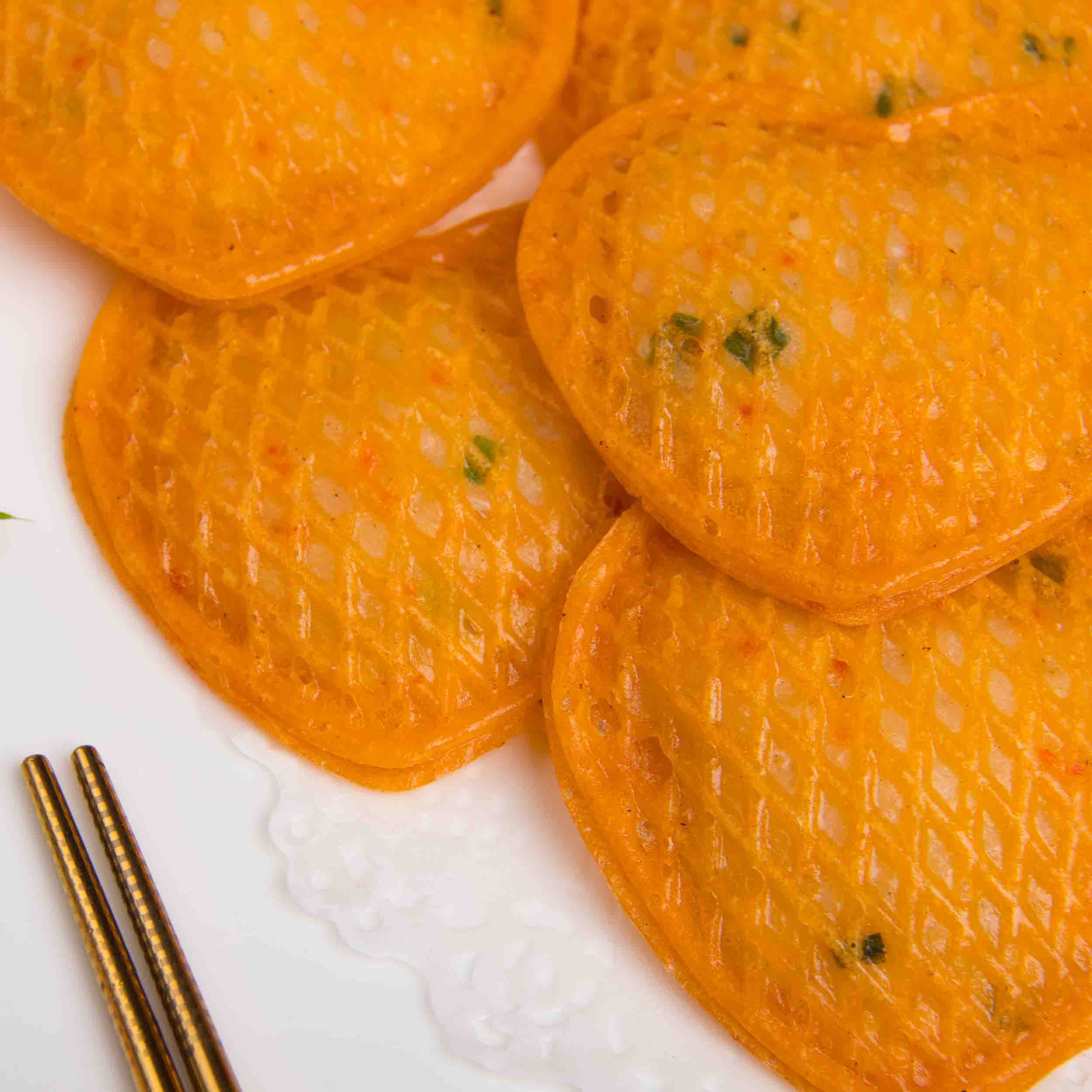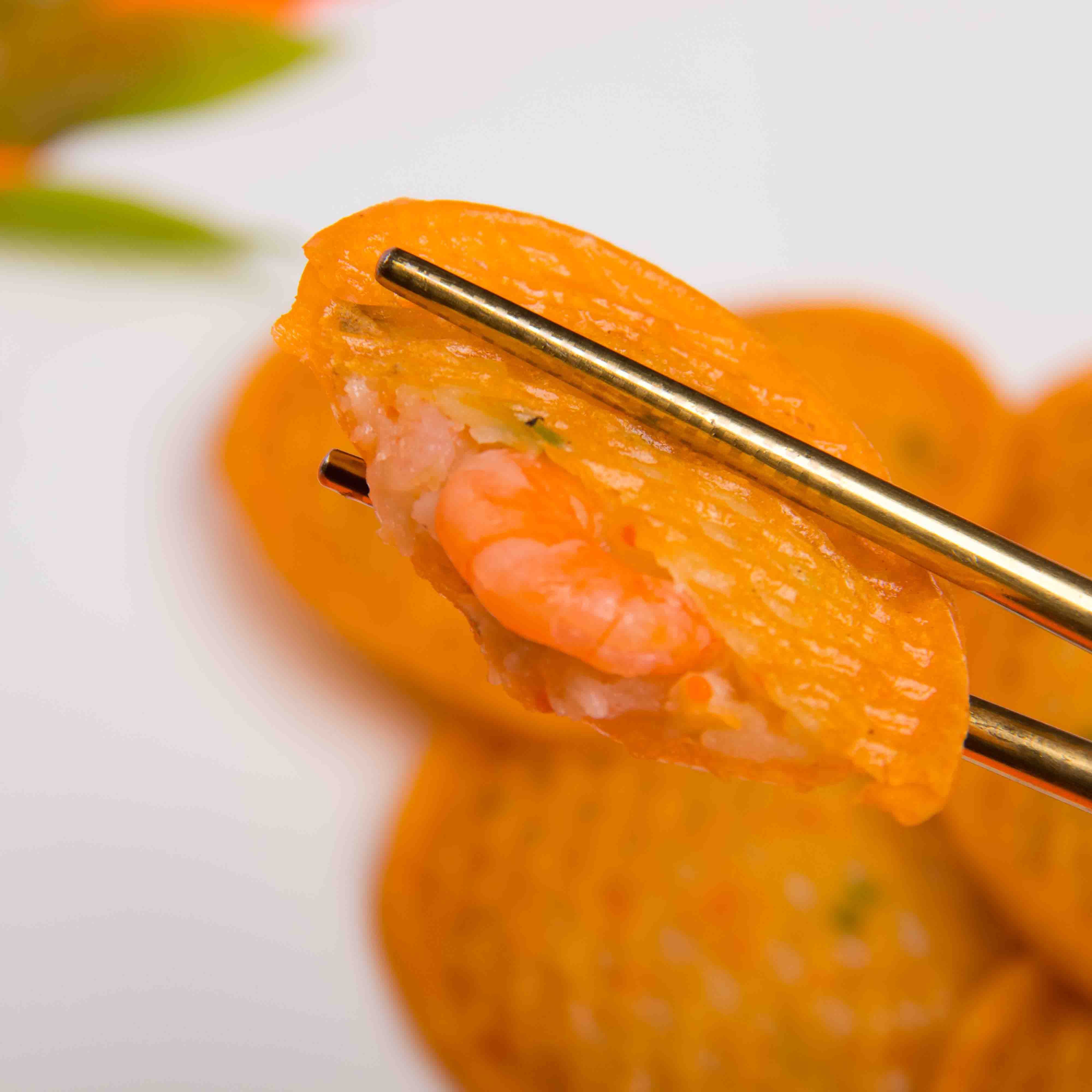 虾饼采用新鲜捕获的虾制成,质地紧实有弹性。平日在家储备一些,炒着炒着吃,又快又方便。