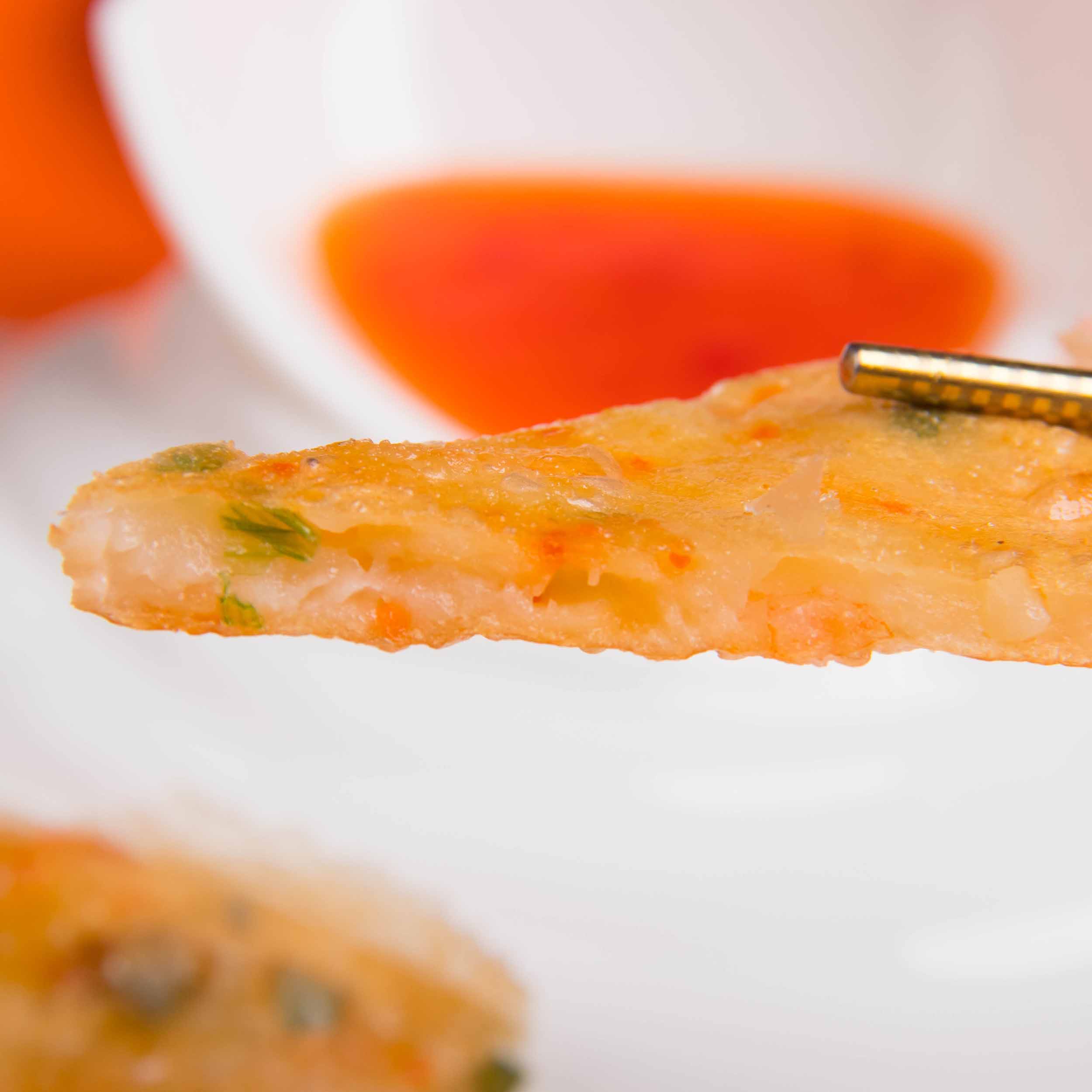 小吃或开胃菜: 海鲜饼还可以切成小块,作为餐前或聚会时的开胃菜或小吃。这种紧凑的形状使其成为社交场合的热门选择。