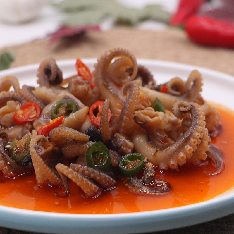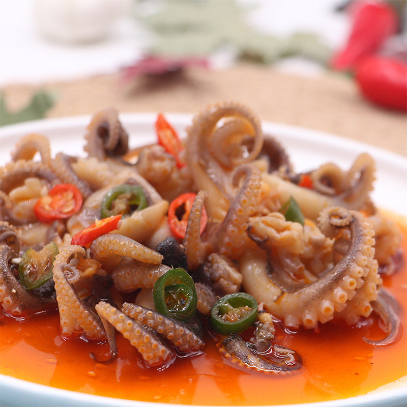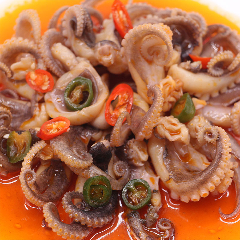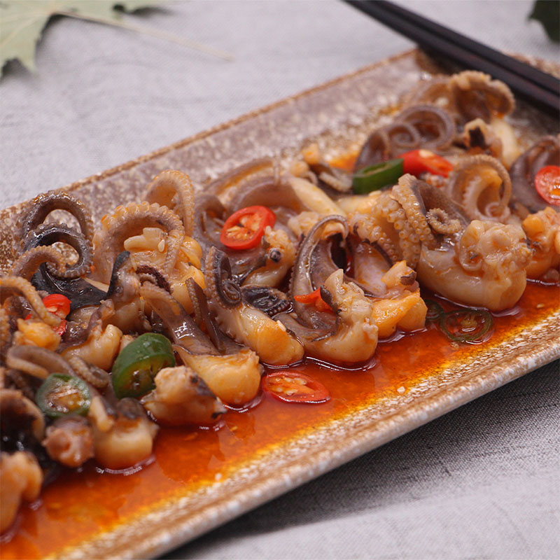 品尝我们的辣章鱼触手,享受海洋中最好的美味。我们的章鱼取自深海捕获物,经过专业切割,确保章鱼的腿丰满、酥脆、嫩滑。无论是寿司、生鱼片、炖菜还是炒菜,我们的章鱼都展现出丰富的鲜味,为每道菜提供独特而精致的海鲜体验。
