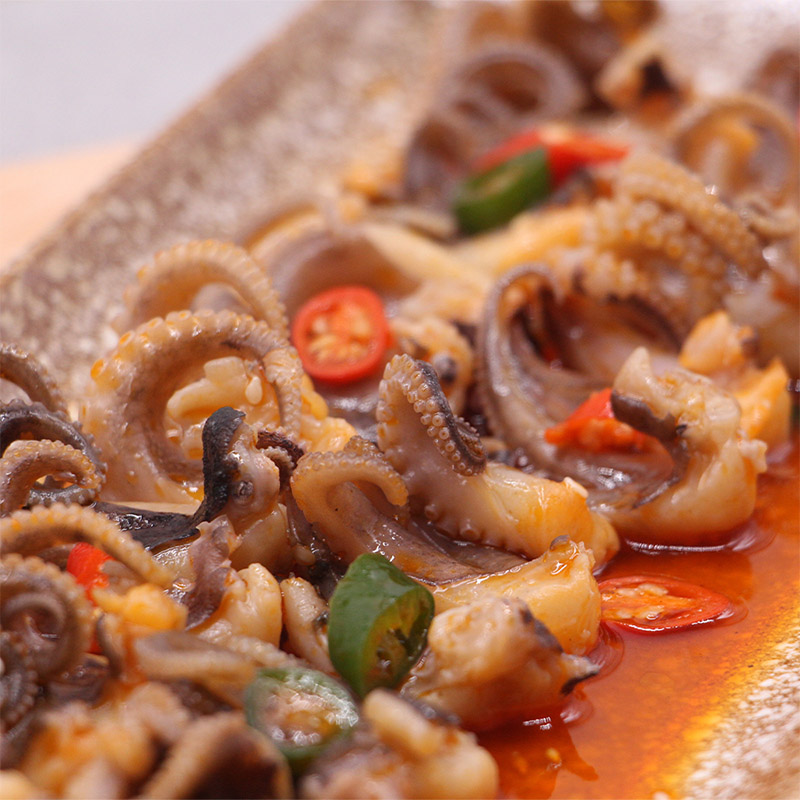 加入辣味章鱼触手,将您的炒菜变成美味佳肴。它们的浓郁风味与蔬菜完美结合,创造出唤醒味蕾的辛辣海鲜混合菜。